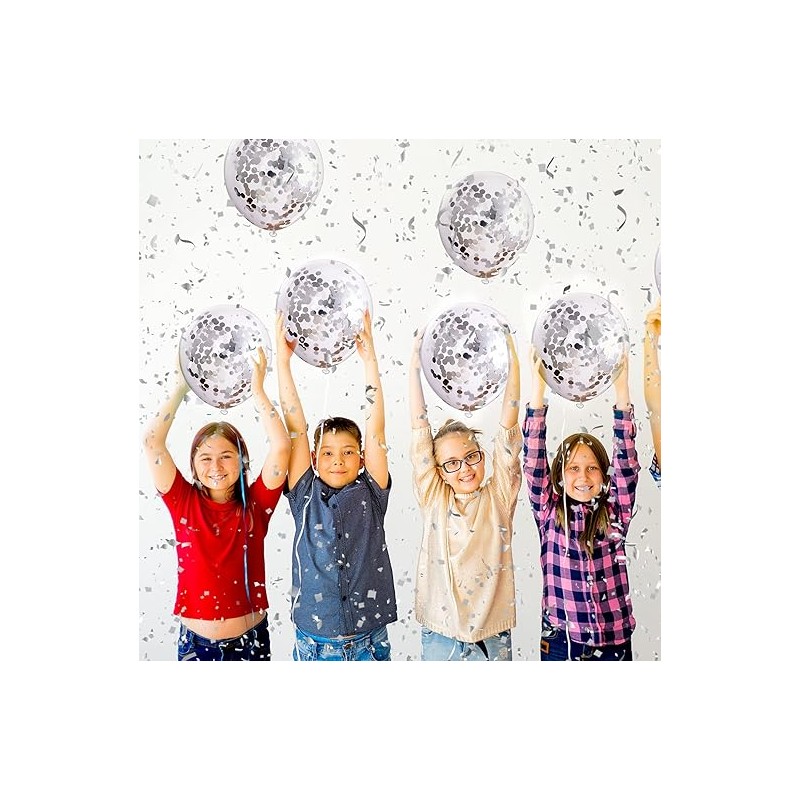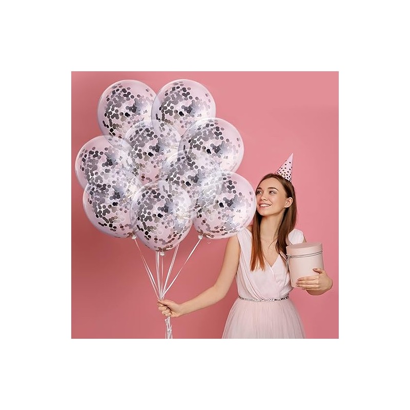 Dodaj blasku każdej uroczystości dzięki eleganckim balonom transparentnym wypełnionym srebrnym konfetti. Ten zestaw 100 sztuk to idealna dekoracja na urodziny, rocznice, baby shower, sylwestra, wesela oraz wszystkie imprezy, którym chcesz nadać wyjątkowego charakteru.