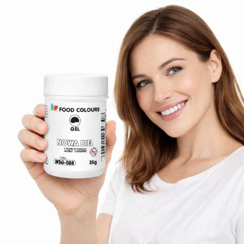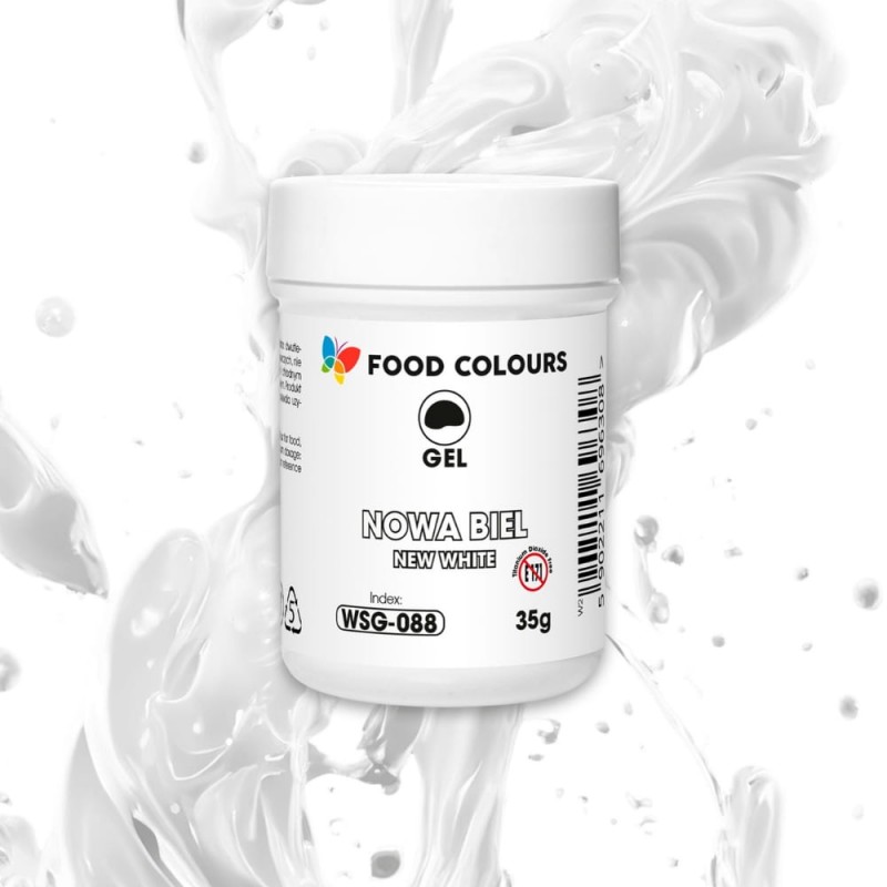 Barwnik spożywczy w żelu, w intensywnym, białym odcieniu to wysokiej jakości produkt przeznaczony do dekorowania wyrobów cukierniczych. Dzięki praktycznemu opakowaniu w słoiczku i intensywnej pigmentacji, barwnik jest wydajny i łatwy w użyciu. Wystarczy dodać go do masy cukrowej, kremu lub innej bazy i dokładnie wymieszać. Niska zawartość wody sprawia, że doskonale łączy się z masami cukierniczymi, nie rozrzedzając ich struktury.