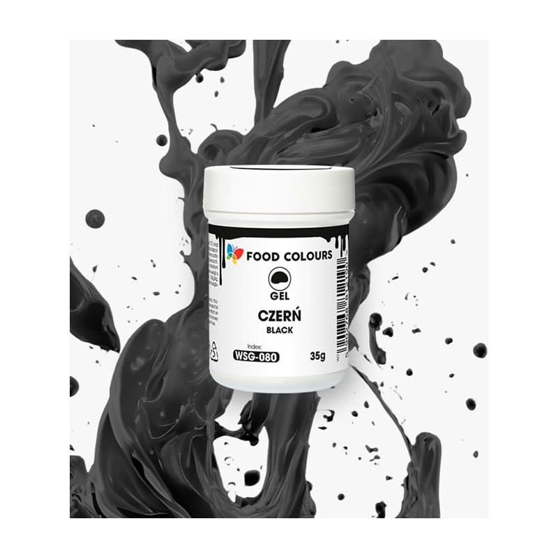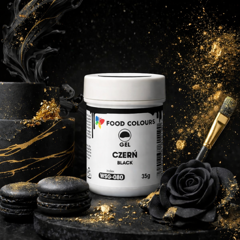 Barwnik spożywczy w żelu, w intensywnym czarnym odcieniu, to wysokiej jakości produkt przeznaczony do dekorowania wyrobów cukierniczych. Dzięki praktycznemu opakowaniu w słoiczku oraz mocnej pigmentacji jest bardzo wydajny i prosty w użyciu. Wystarczy dodać niewielką ilość do masy cukrowej, kremu, lukru lub innej bazy i dokładnie wymieszać, aby uzyskać głęboki, jednolity kolor.