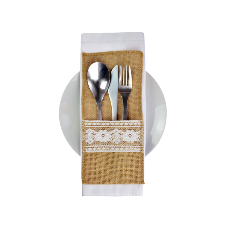 Stylowe i eleganckie kieszonki jutowe to idealny dodatek do dekoracji stołu w stylu rustykalnym, boho oraz vintage. Naturalna juta w połączeniu z delikatną, białą koronką tworzy wyjątkowy efekt, który pięknie podkreśli aranżację na Wielkanoc, komunię, wesele czy rodzinny obiad.