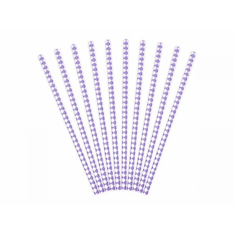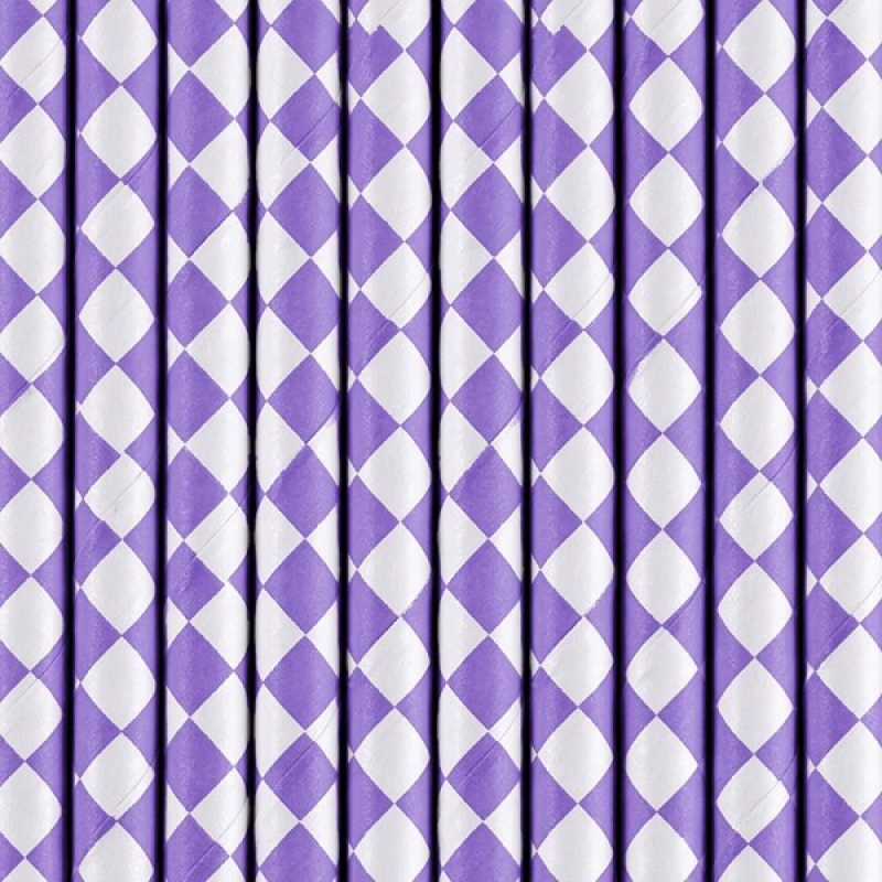 Dodaj elegancji i odrobinę zabawy do swoich napojów dzięki słomkom papierowym w lilowym kolorze z geometrycznym wzorem rombów. Idealne na przyjęcia, urodziny, baby shower czy letnie spotkania z przyjaciółmi – pięknie komponują się z różnymi dekoracjami.