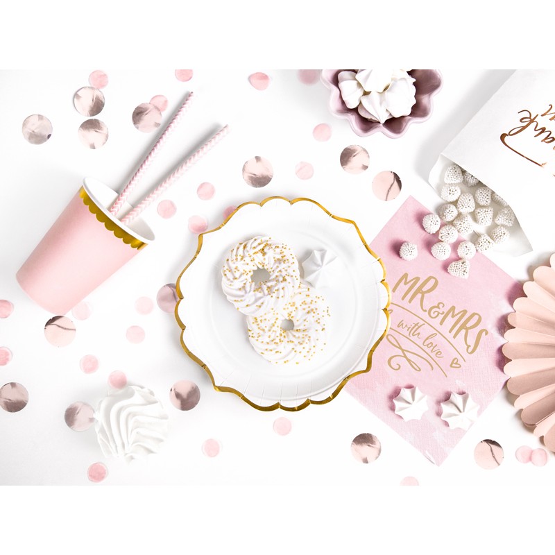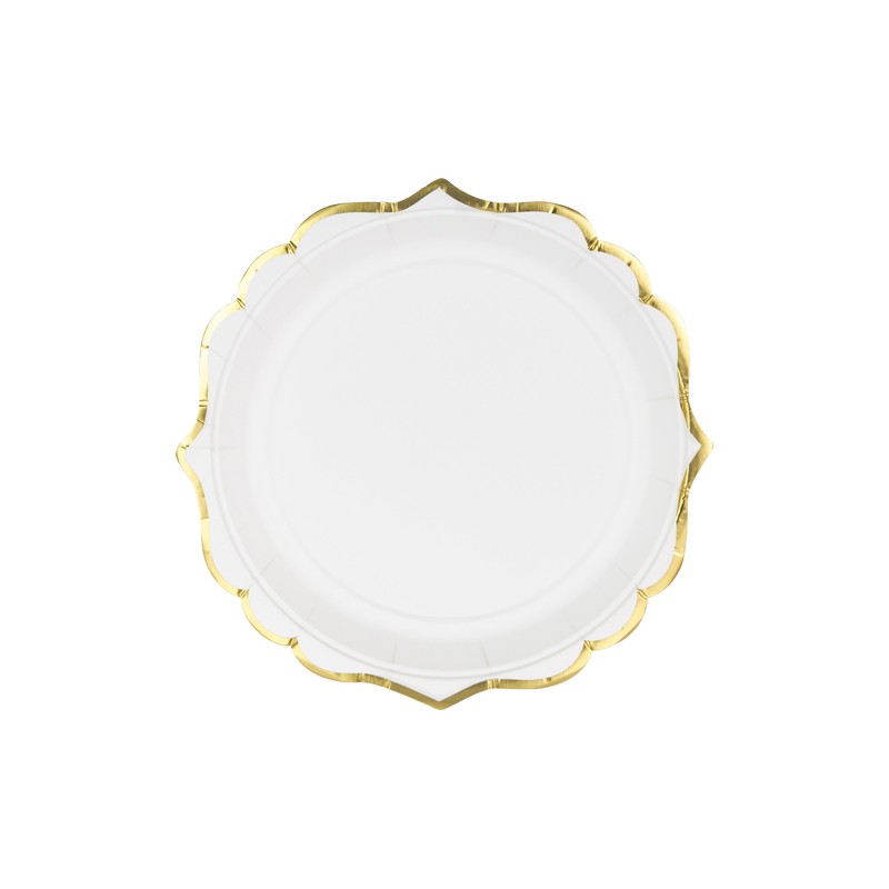 Eleganckie talerzyki papierowe w kolorze białym ze złotymi brzegami to idealny wybór na wyjątkowe okazje! Połączenie klasycznej bieli z subtelnym złotym akcentem nada każdemu stołowi szyku i stylu.