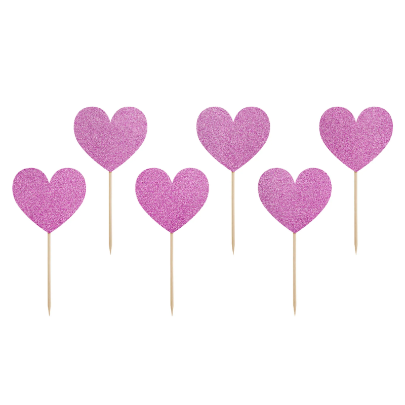 Toppery na tort – brokatowe serca różowe (6 szt.)