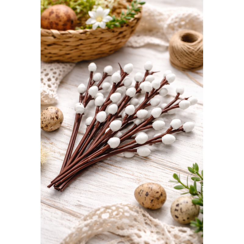 Stwórz wyjątkową, wiosenną dekorację z delikatnymi baziami kotkami. Idealne do stroików wielkanocnych, koszyczka ze święconką, bukietów oraz dekoracji DIY. Naturalny wygląd i staranne wykonanie sprawiają, że pięknie prezentują się zarówno samodzielnie, jak i jako dodatek do kompozycji.